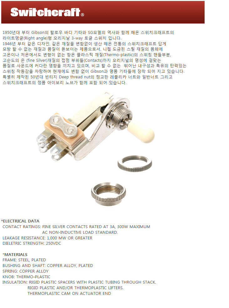 Switchcraft ST13 Guitar 3Way Angle Switch 스위치크래프트 3단 앵글 스위치