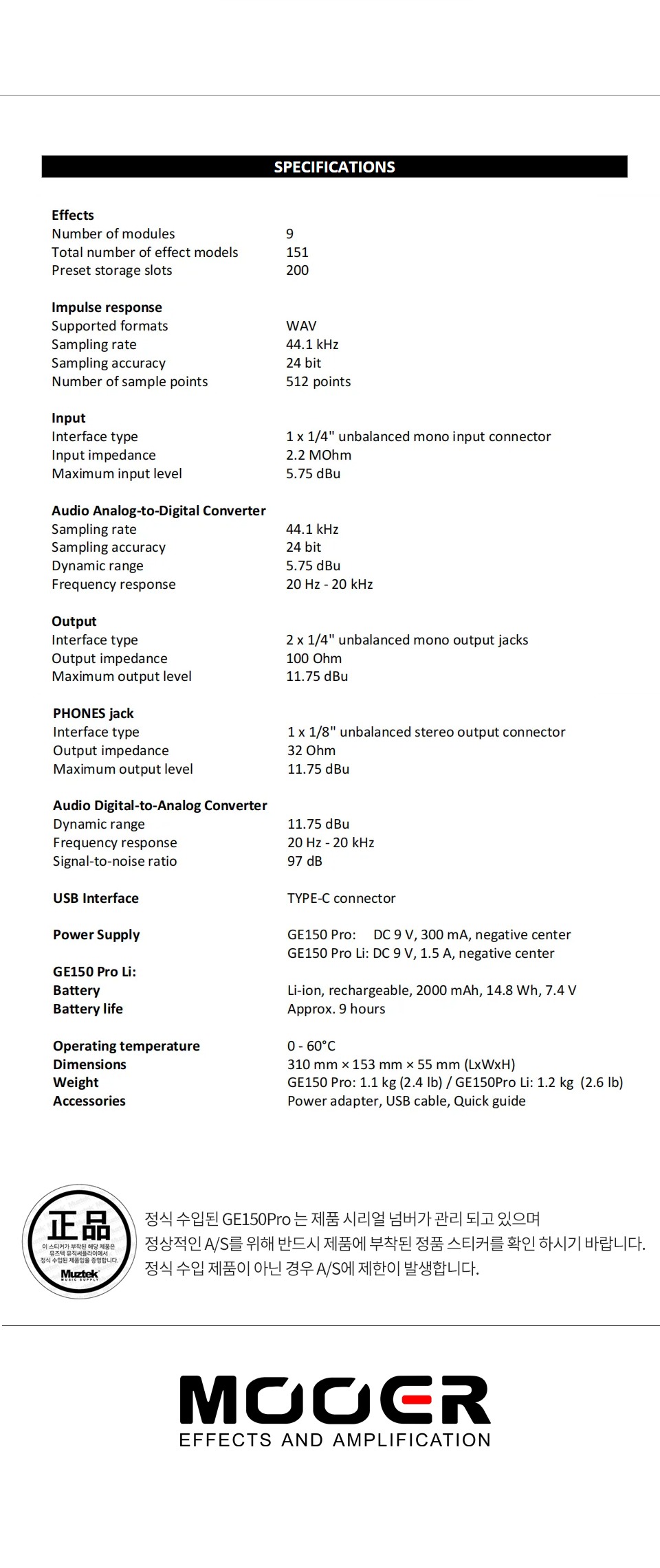 무어오디오 Mooer Audio GE150 Pro 멀티이펙터