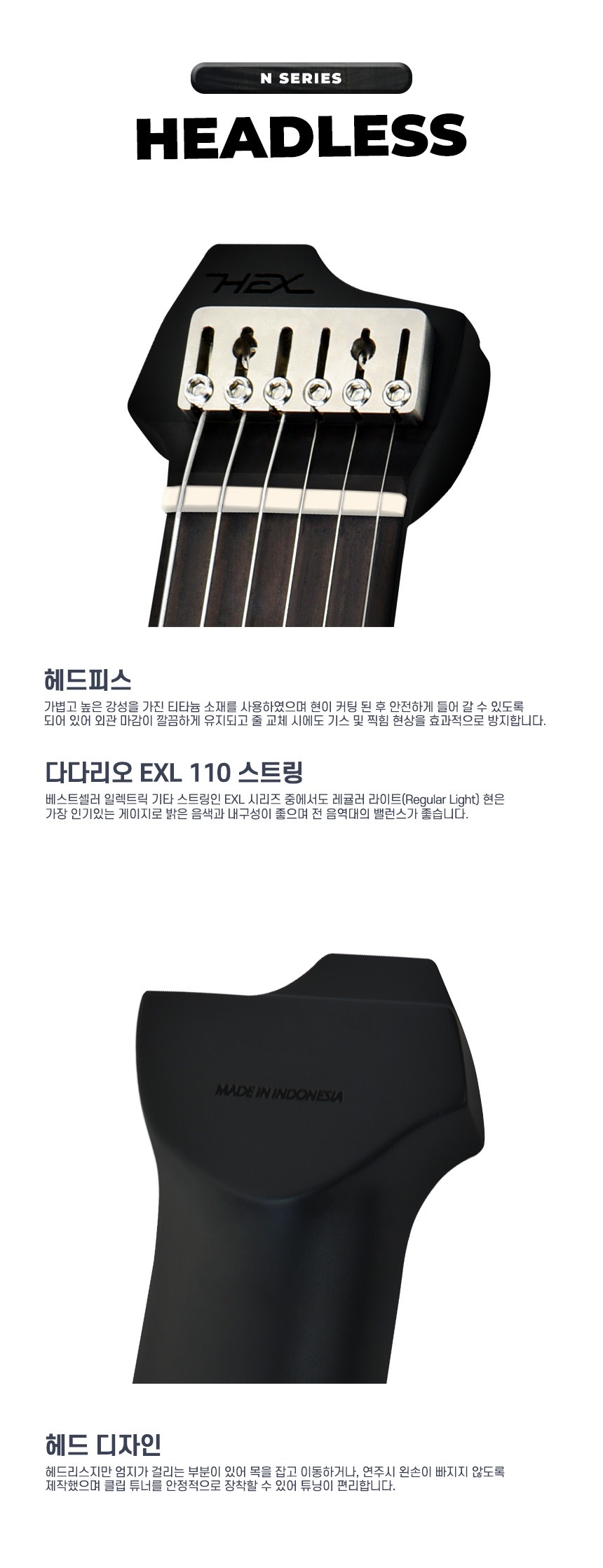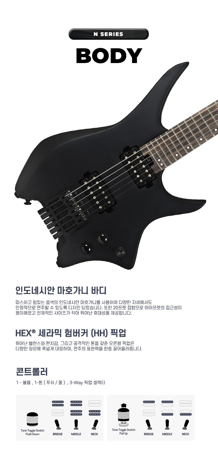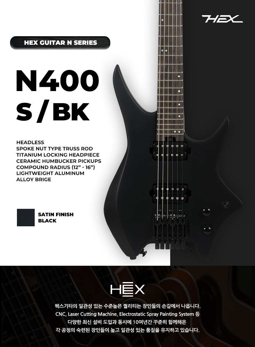헥스 HEX N400 헤드리스 일렉기타 (S/BK)