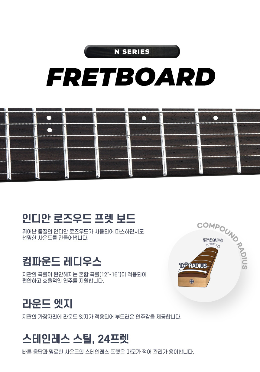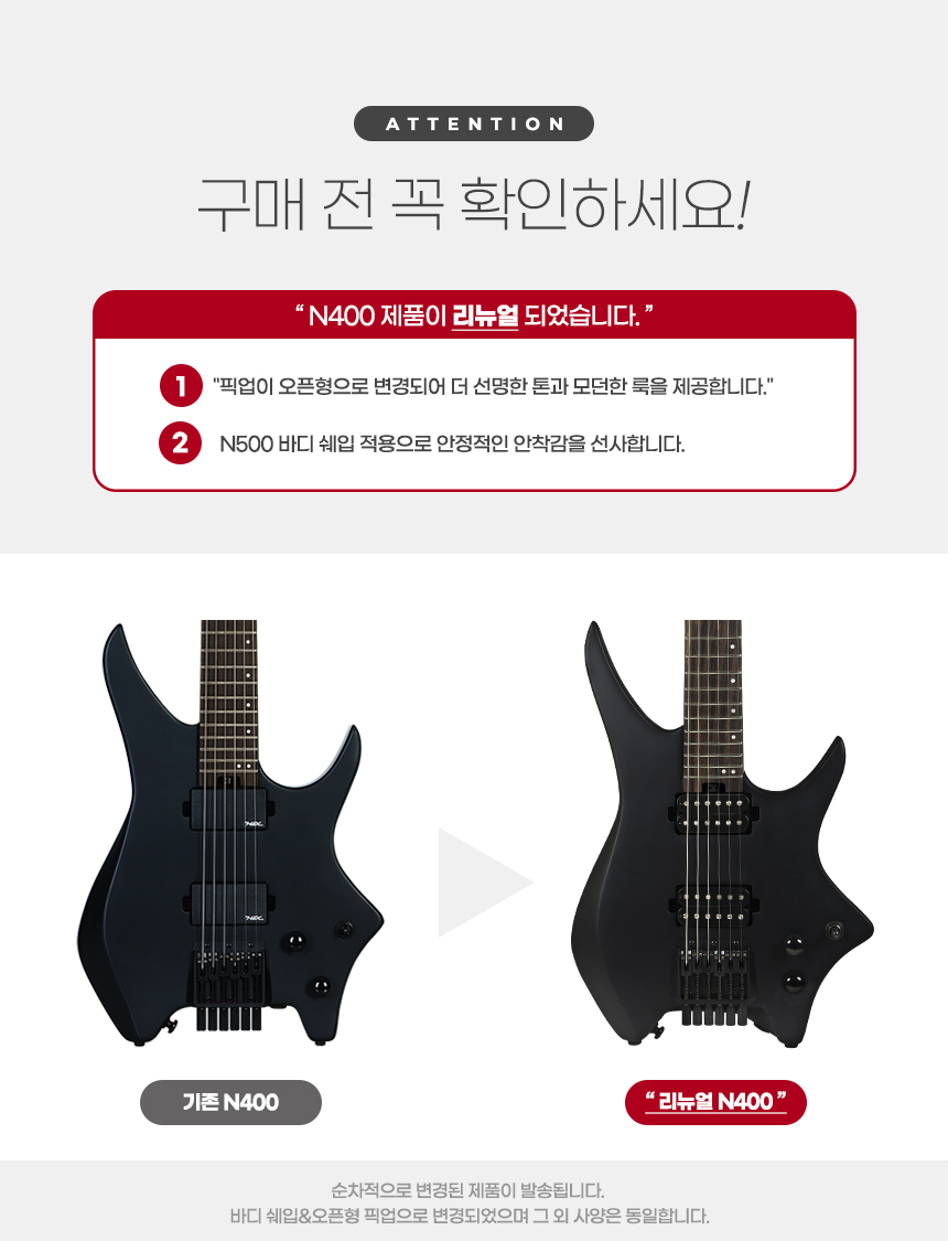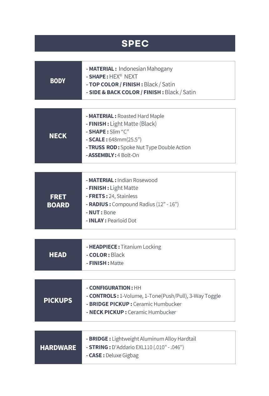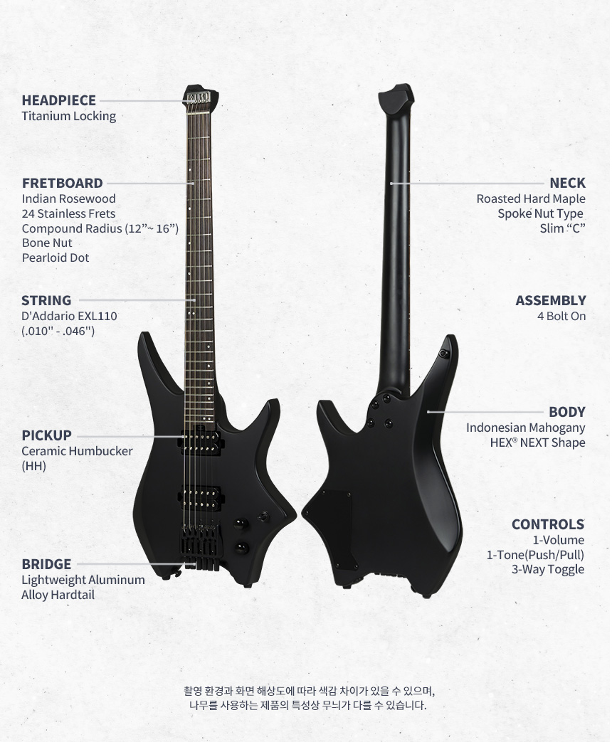 헥스 HEX N400 헤드리스 일렉기타 (S/BK)