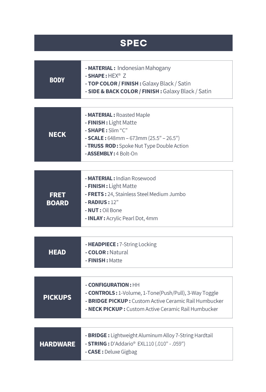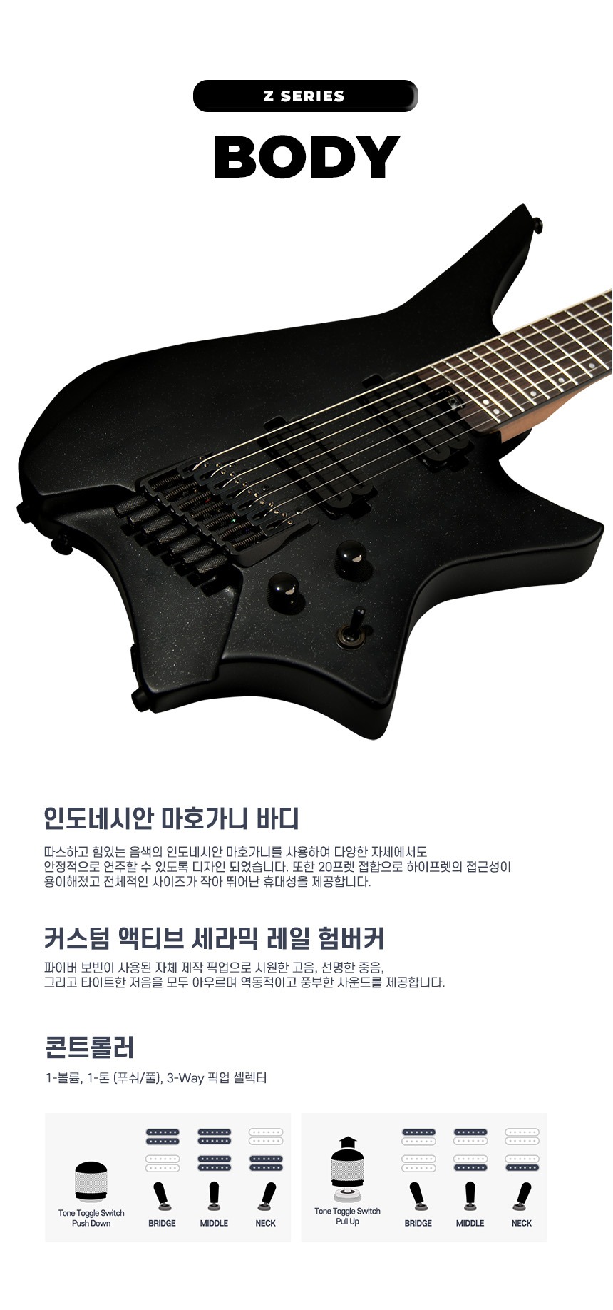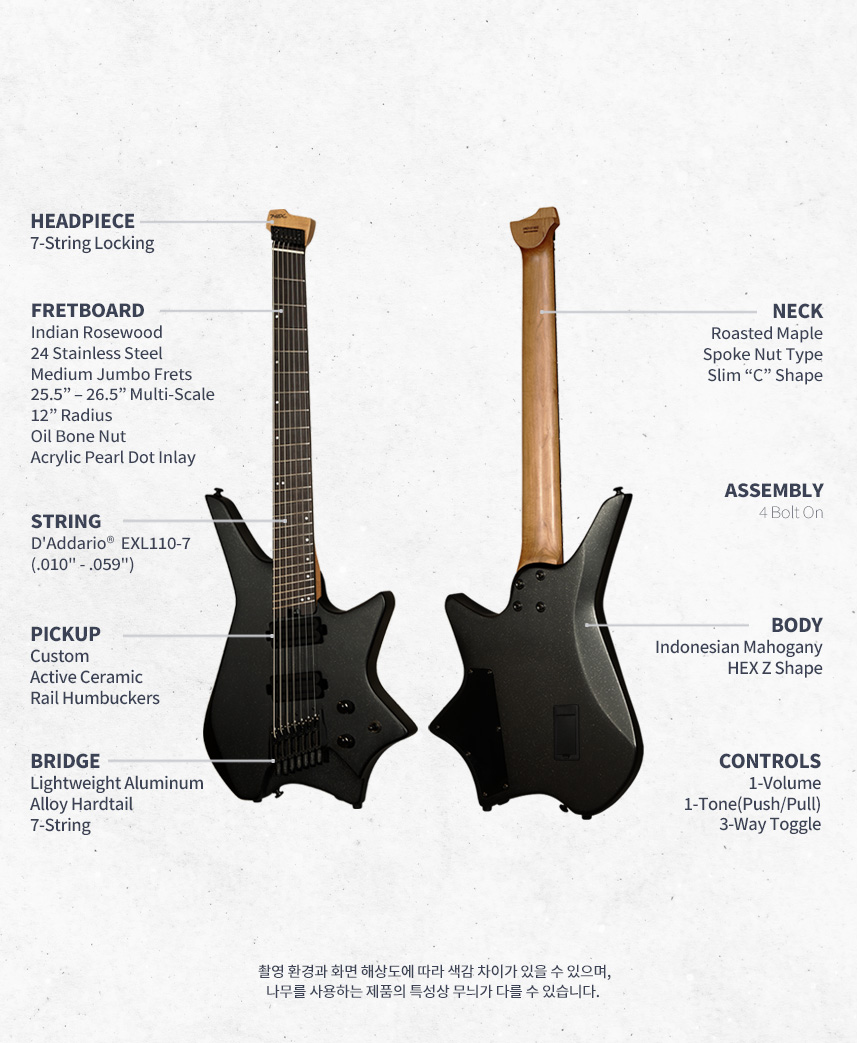 HEX - Z507 헥스 멀티스케일 헤드리스 일렉기타 (S/GB)