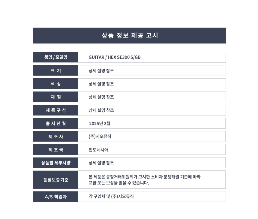 HEX - SE300 헥스 슈퍼스트랫 일렉기타 (S/GB)