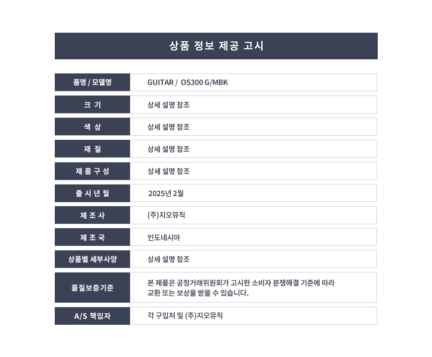 HEX - OS300 헥스 오프셋 일렉기타 (G/MBK)