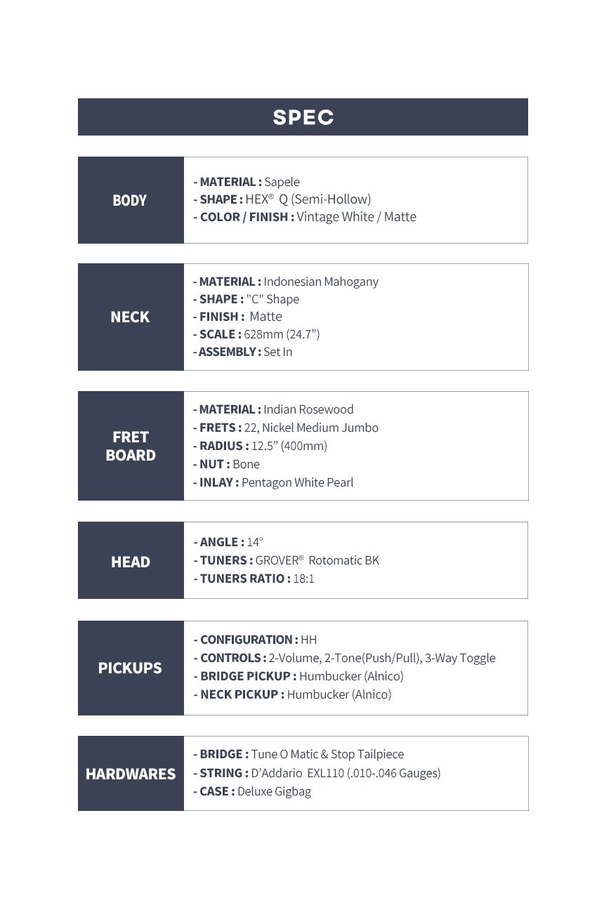 HEX - Q800 헥스 국산 세미할로우 일렉기타 (M/VW)