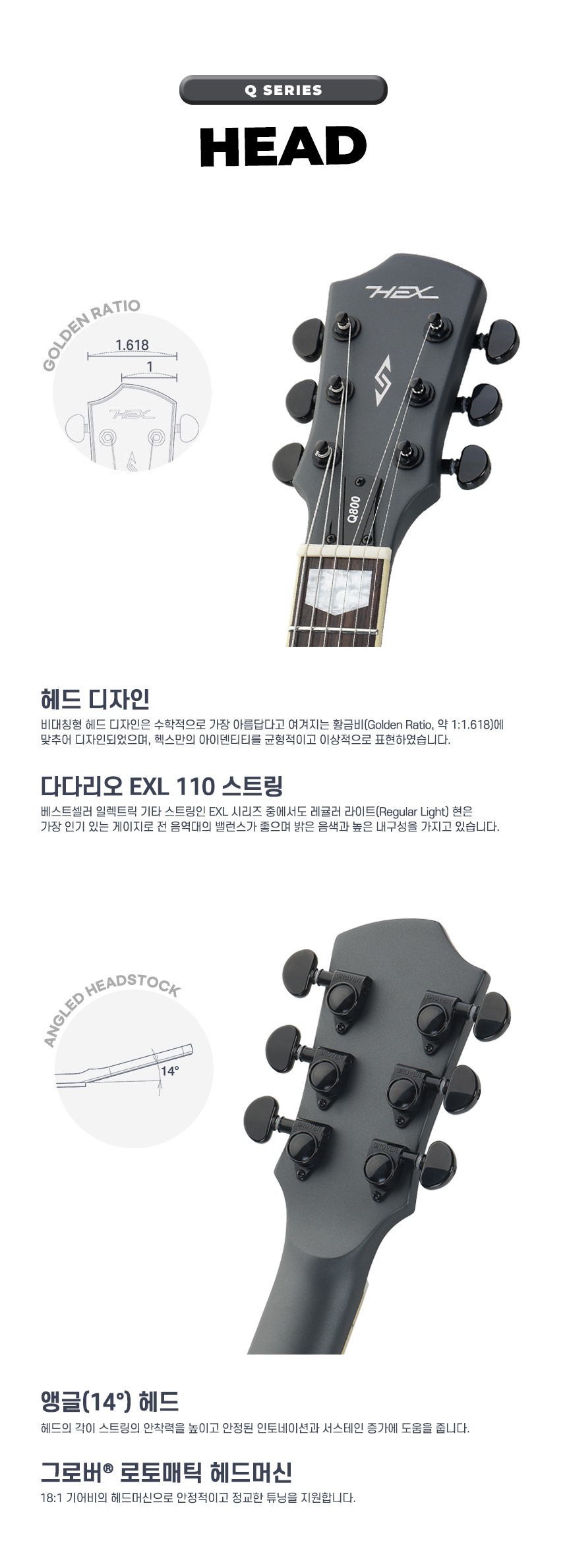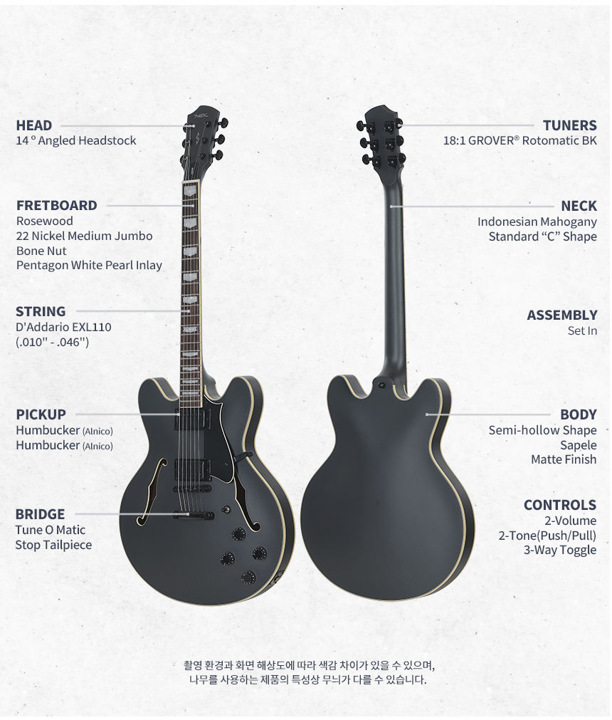 HEX - Q800 헥스 국산 세미할로우 일렉기타 (M/MG)