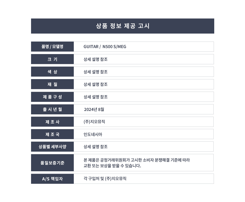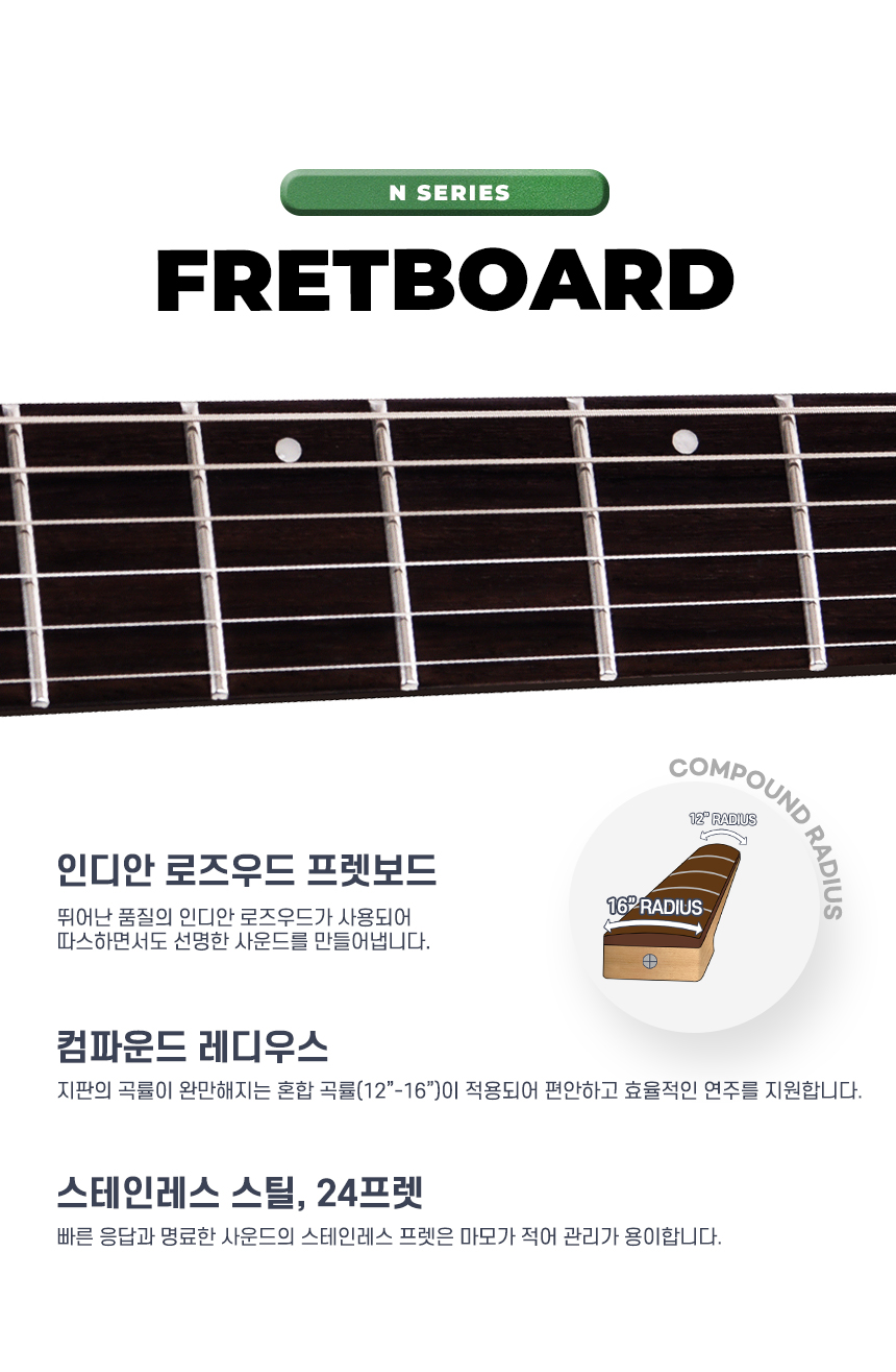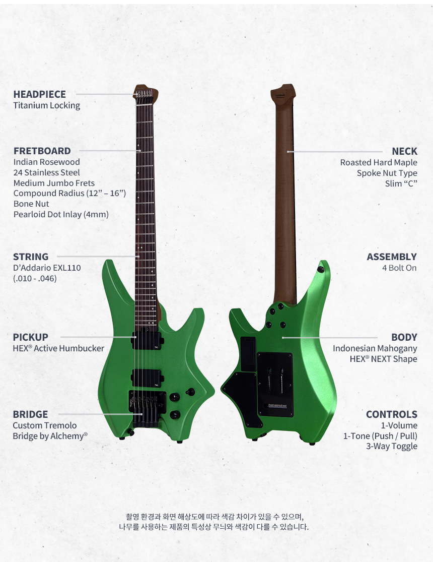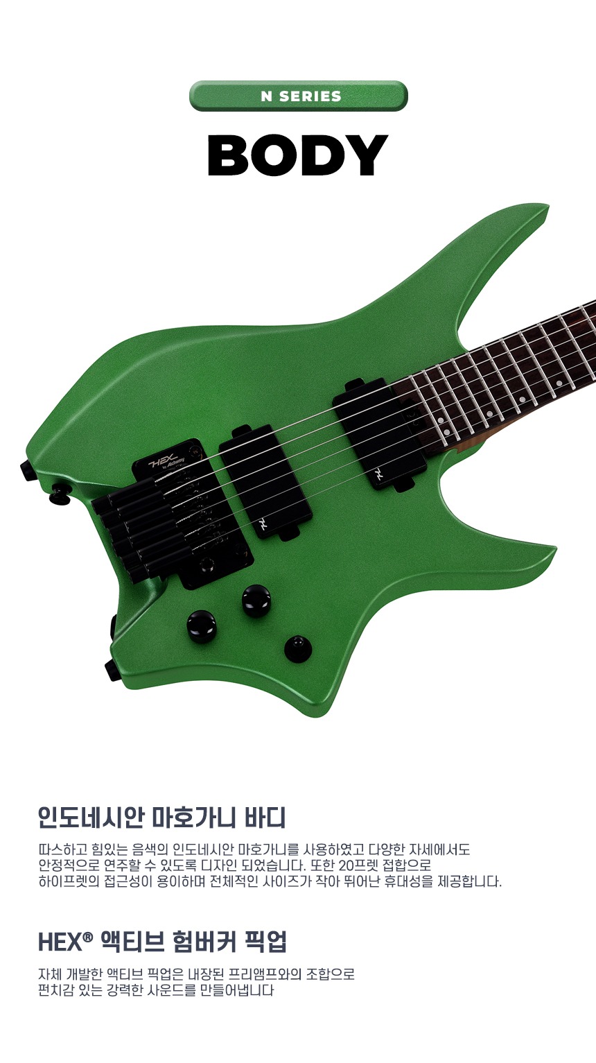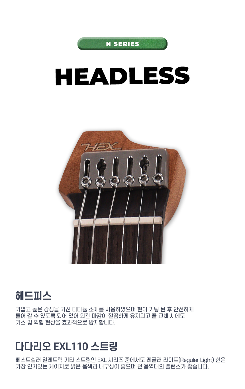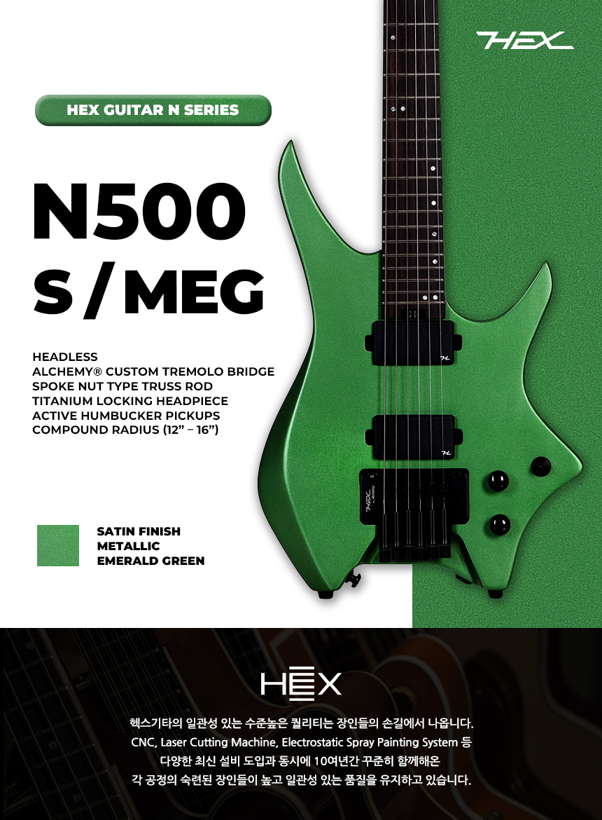 HEX - N500 헥스 액티브픽업 헤드리스 일렉기타 (S/MEG)