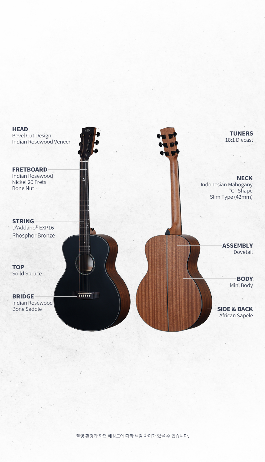 HEX - M300 M/BT 헥스 탑솔리드 미니 통기타