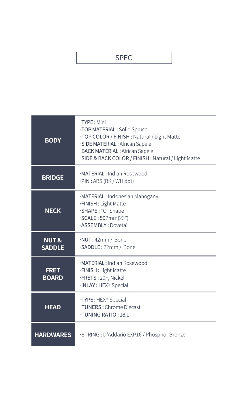 HEX - M300 M 헥스 탑솔리드 미니 통기타