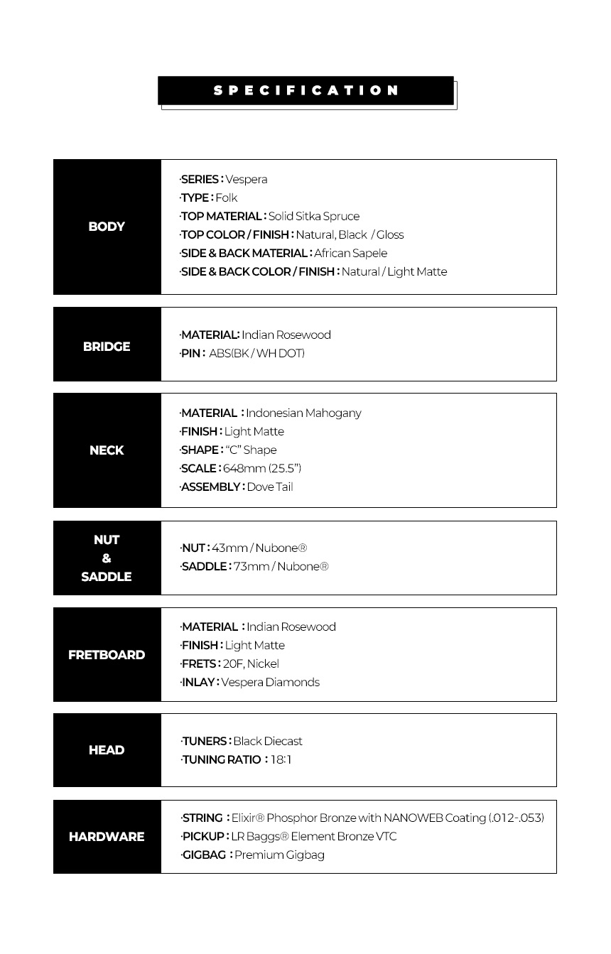 HEX - VF300E 헥스 탑솔리드 통기타