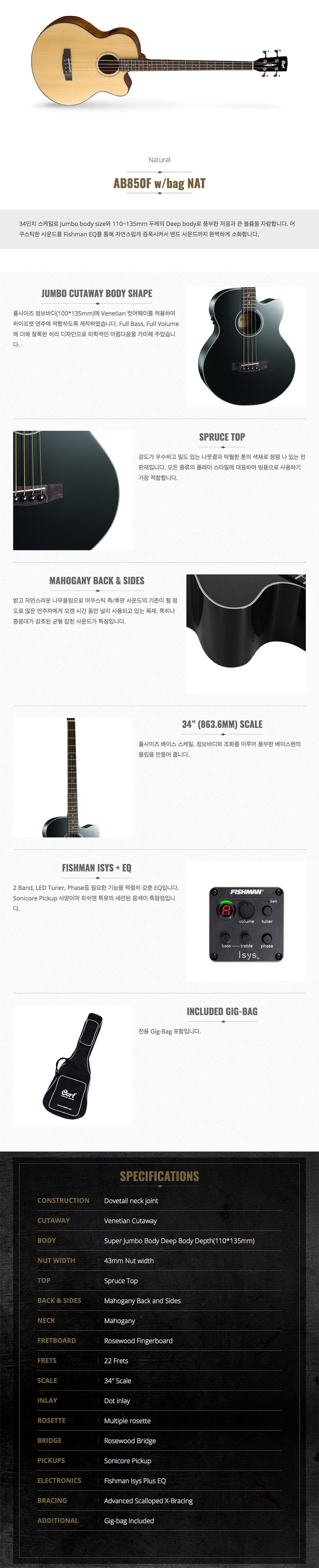 콜트 Cort AB850F 어쿠스틱 베이스기타 (NAT)