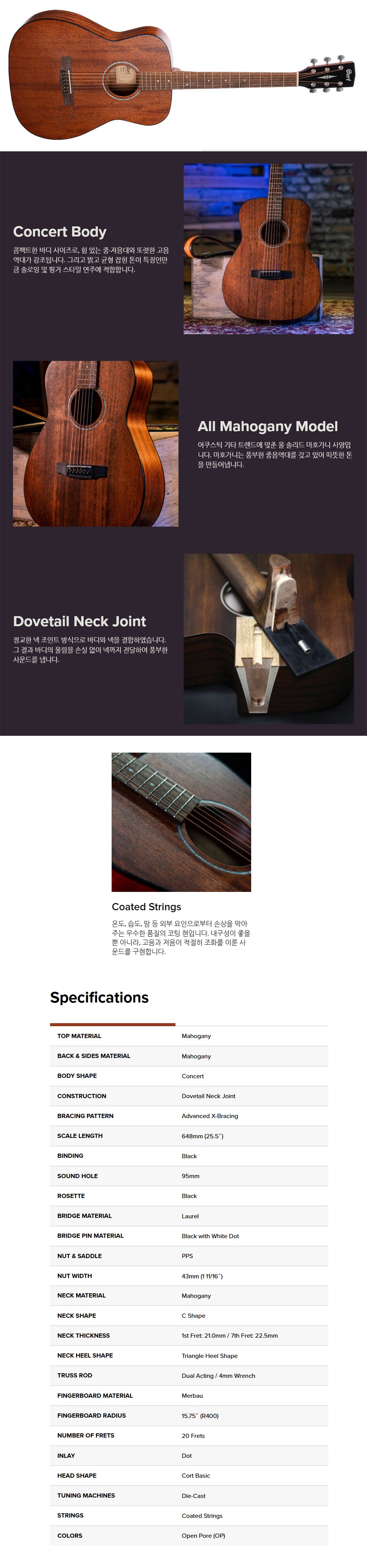 AF510M은 올 마호가니 바디와 내추럴 콘서트 바디 디자인을 갖춘 어쿠스틱 기타입니다. 오픈 포어 피니쉬 처리를 하여 시간이 지남에 따라 더욱 자연스러운 울림을 냅니다.
