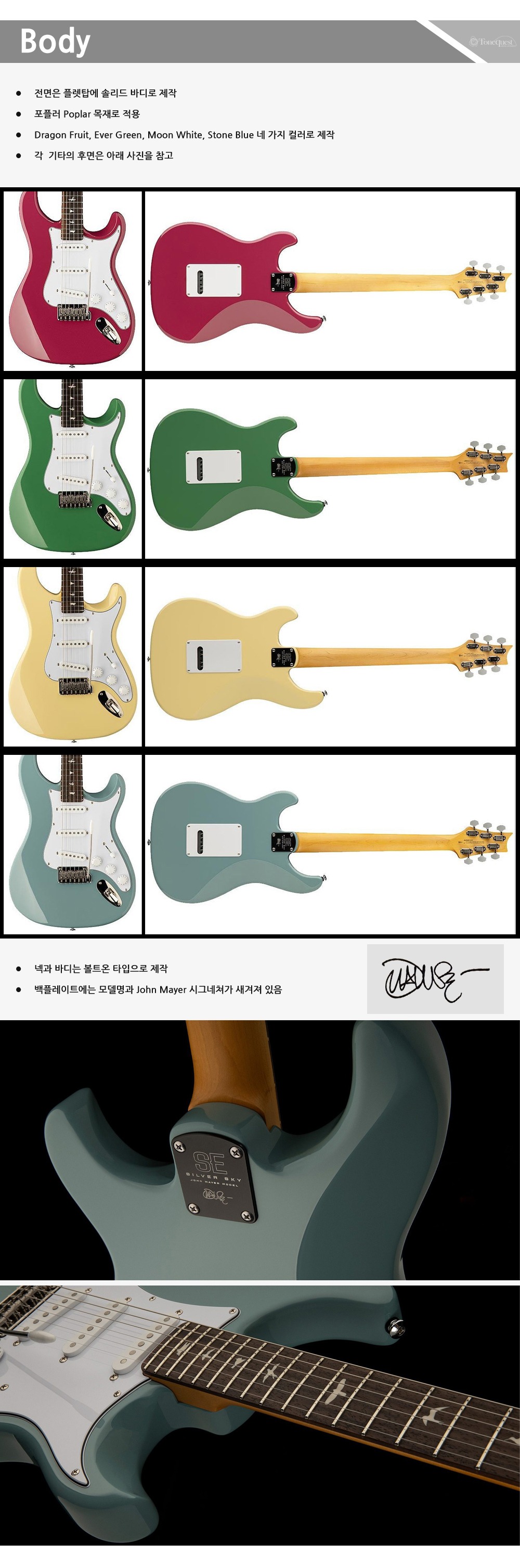 PRS SE 2024 Silver Sky 존메이어 (Ever Green)