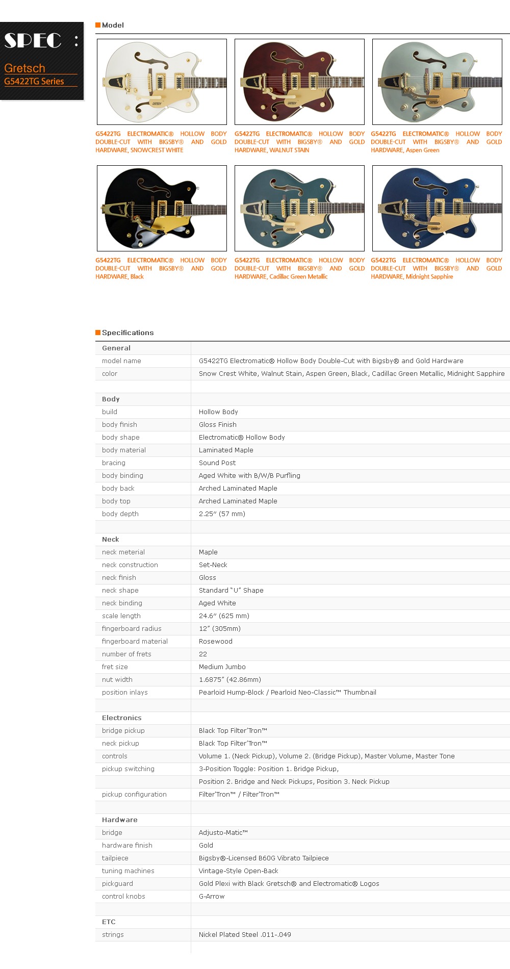 Gretsch G5422TG - Walnut 그레치 더블컷 할로우 바디, 골드파츠 Made in Korea