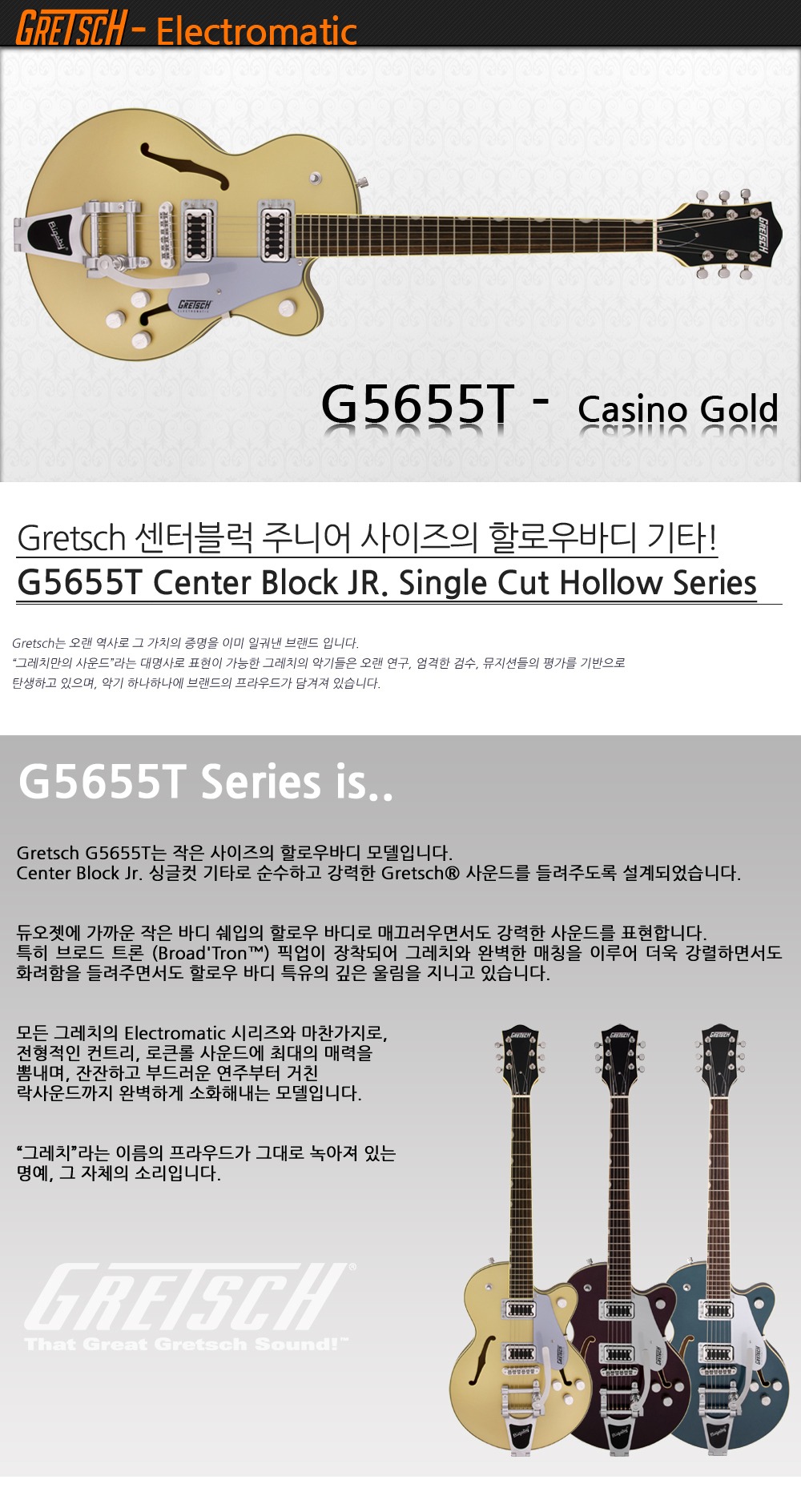 Gretsch G5655T Center Block Jr. with Bigsby® 그레치 주니어 할로우바디 (3컬러)