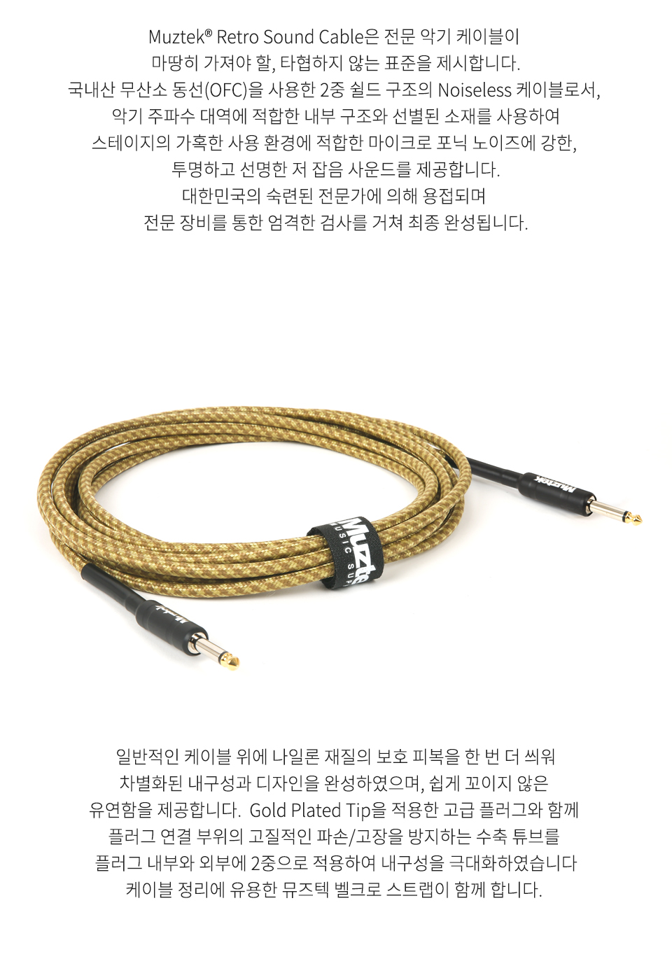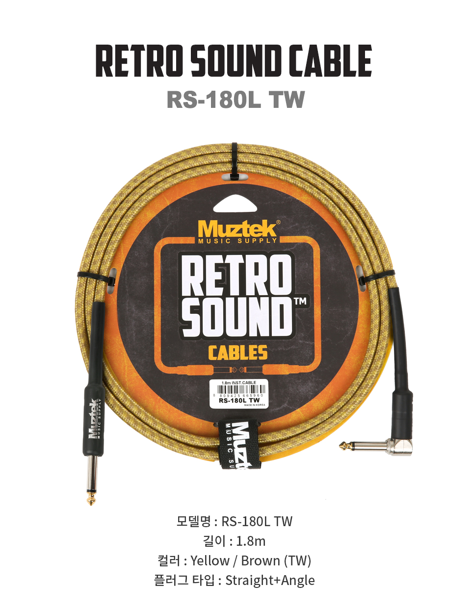 Muztek Retro Sound 뮤즈텍 악기용 트위드 L자 케이블 1.8m SL (RS180L TW)
