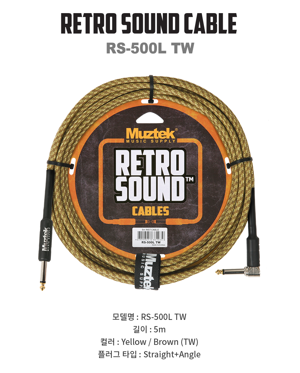 Muztek - Retro Sound Cable / 뮤즈텍 기타 & 베이스 케이블 5m (RS-500L TW)
