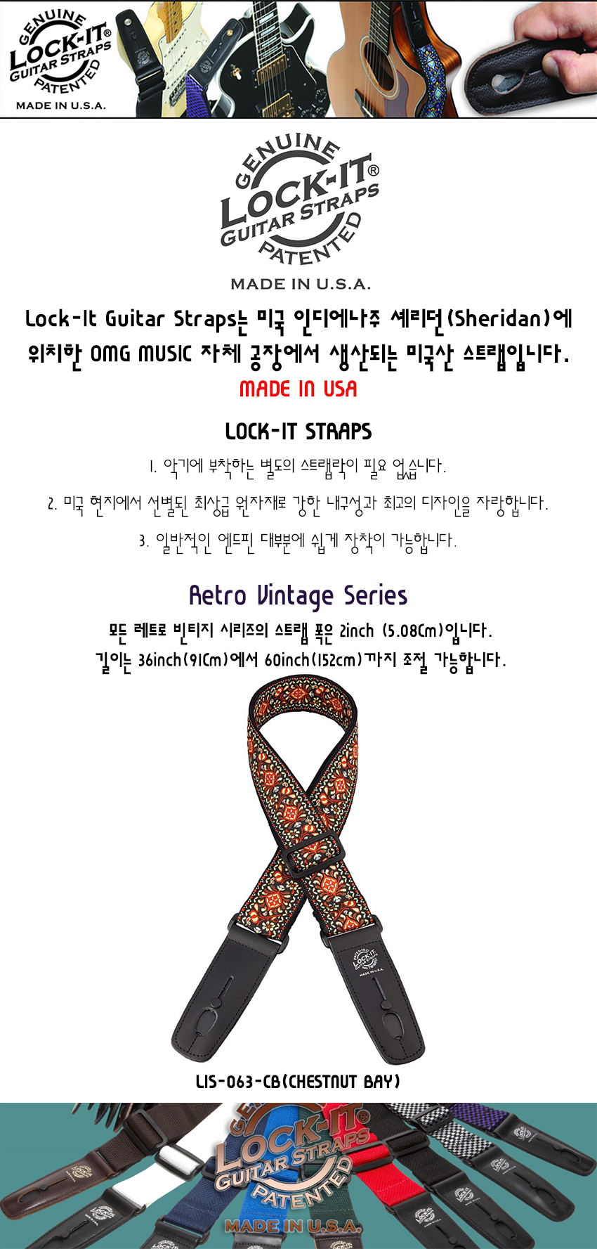 LOCK-IT - Retro Vintage Guitar Strap 스트랩락 내장 기타스트랩 - Chestnut Bay