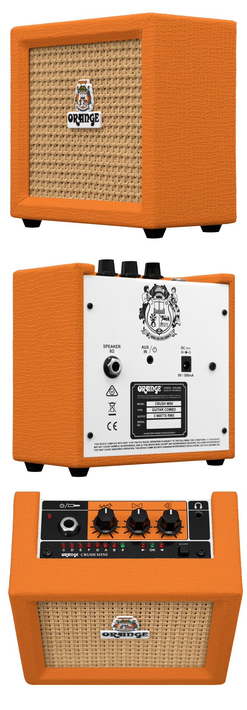 Crush Mini는 작고 가벼운 앰프에서 오렌지만의 클래식한 사운드를 제공하도록 새롭게 디자인 되었습니다. 이는 무대 뒤에서의 워밍업, 혹은 침실에서의 연습 시 완벽한 동반자 입니다.새롭게 디자인된 패널은 Volume, , Gain , Shape노브로 구성되었으며, 볼륨과 게인 노브를 올림으로써 브리티시한 크런치 사운드와 하인게인 사운드까지 얻을 수 있습니다.또한 마이크로 다크에 있던 Shape 컨트롤 노브는 중음을 컷 하거나, 부스트 하여, 간단한 노브 조작으로 UK사운드와 US사운드를 효과를 낼 수 있습니다.Crush Mini의 새로운 8옴 스피커 출력 기능으로 더 큰 스피커에 연결할 수 있어, 작은 미니 스피커의 한계를 뛰어 넘어 더 많은 사운드를 얻을 수 있습니다.또한 Crush mini 에 내장된 튜너로 별도의 튜너가 없이도 바로 조율이 가능하며, 헤드폰 연결 후 사용할 경우에는 자체 스피커에는 소리가 나오지 않아 주위에 상관없이 혼자만의 연주를 즐길 수 있습니다.또한 AUX 기능의 추가로, 음악 플레이 및 연주 트랙의 재생이 가능하도록 제작 되었습니다.