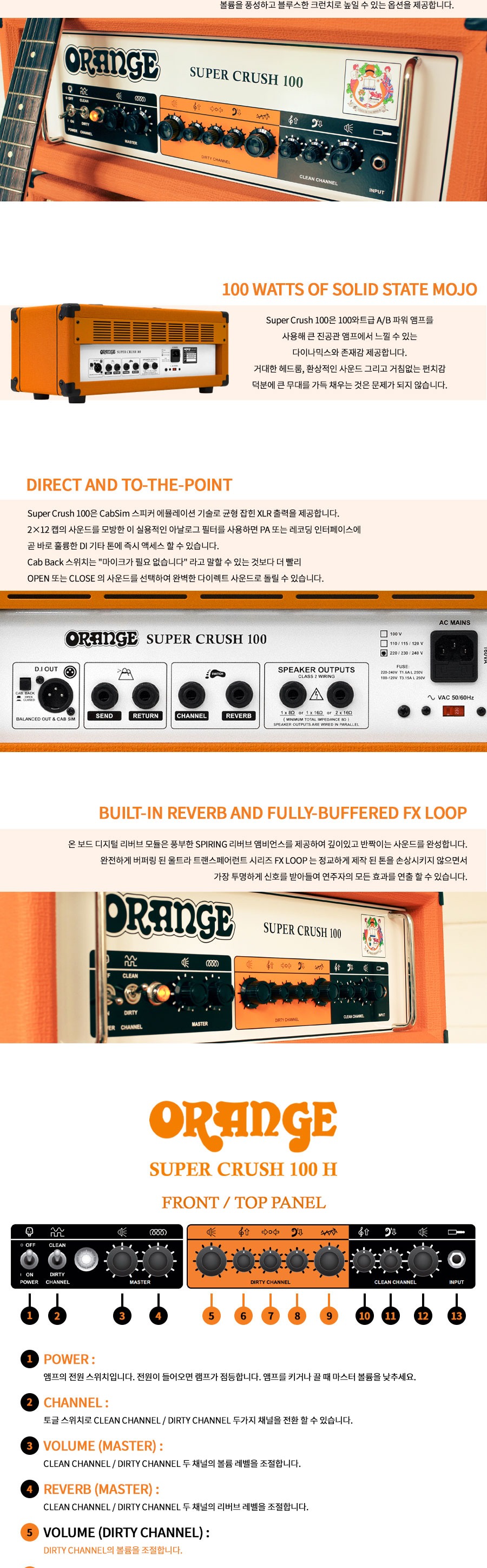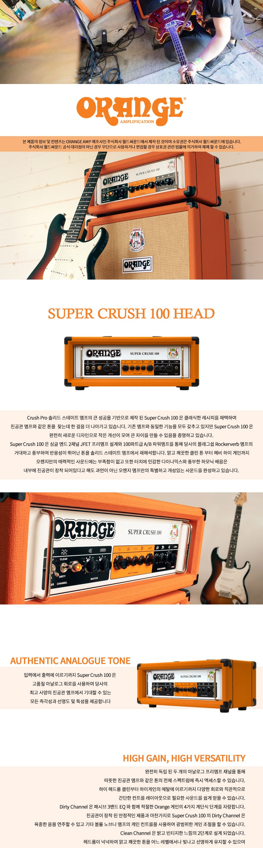 Orange Super Crush 100 Head 오렌지 100와트 앰프 헤드