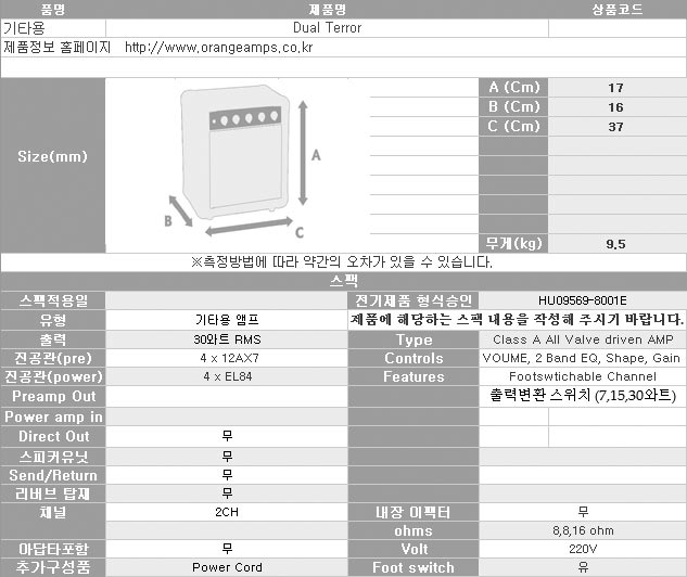 Orange Dual Terror 오렌지 듀얼테러 진공관 기타헤드