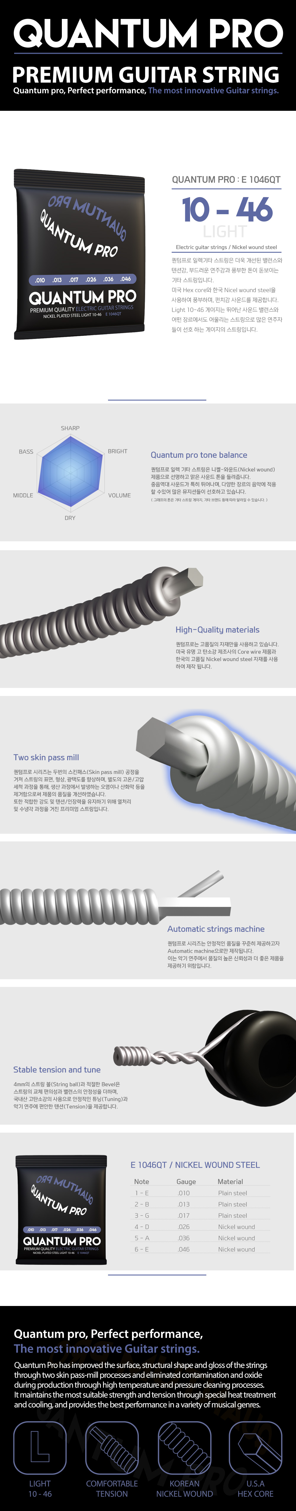 PLIC 플릭 일렉기타줄 세트 010-046 QUANTUM PRO 프리미엄 일렉기타 스트링