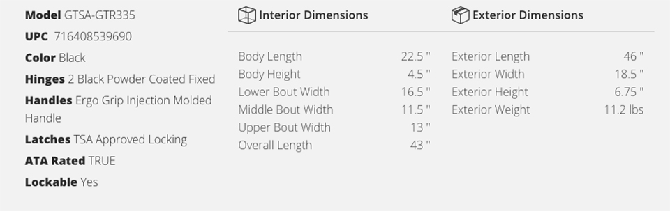 이 케이스는 세미할로 일렉기타에 적합하도록 디자인된 하드케이스입니다. 거의 대부분의 335 스타일의 일렉기타 제품들을 수납 가능하며, 레스폴, 풀 할로, 어쿠스틱기타, 등의 제품과는 호환되지 않습니다.