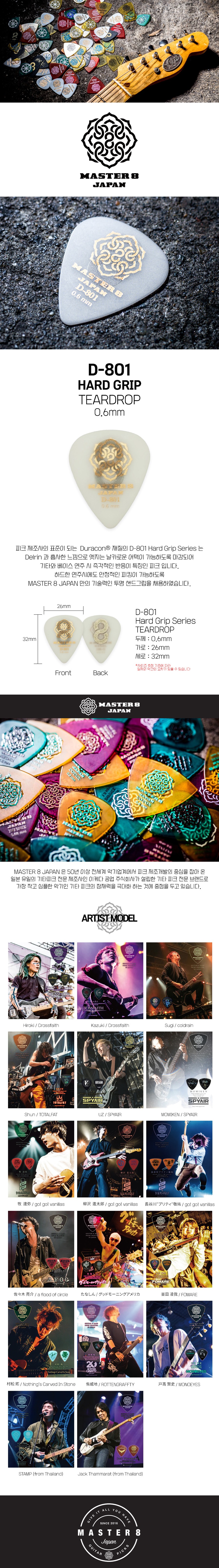 Master 8 Japan - D-801 Hard Grip Teardrop Pick 0.6mm 기타피크