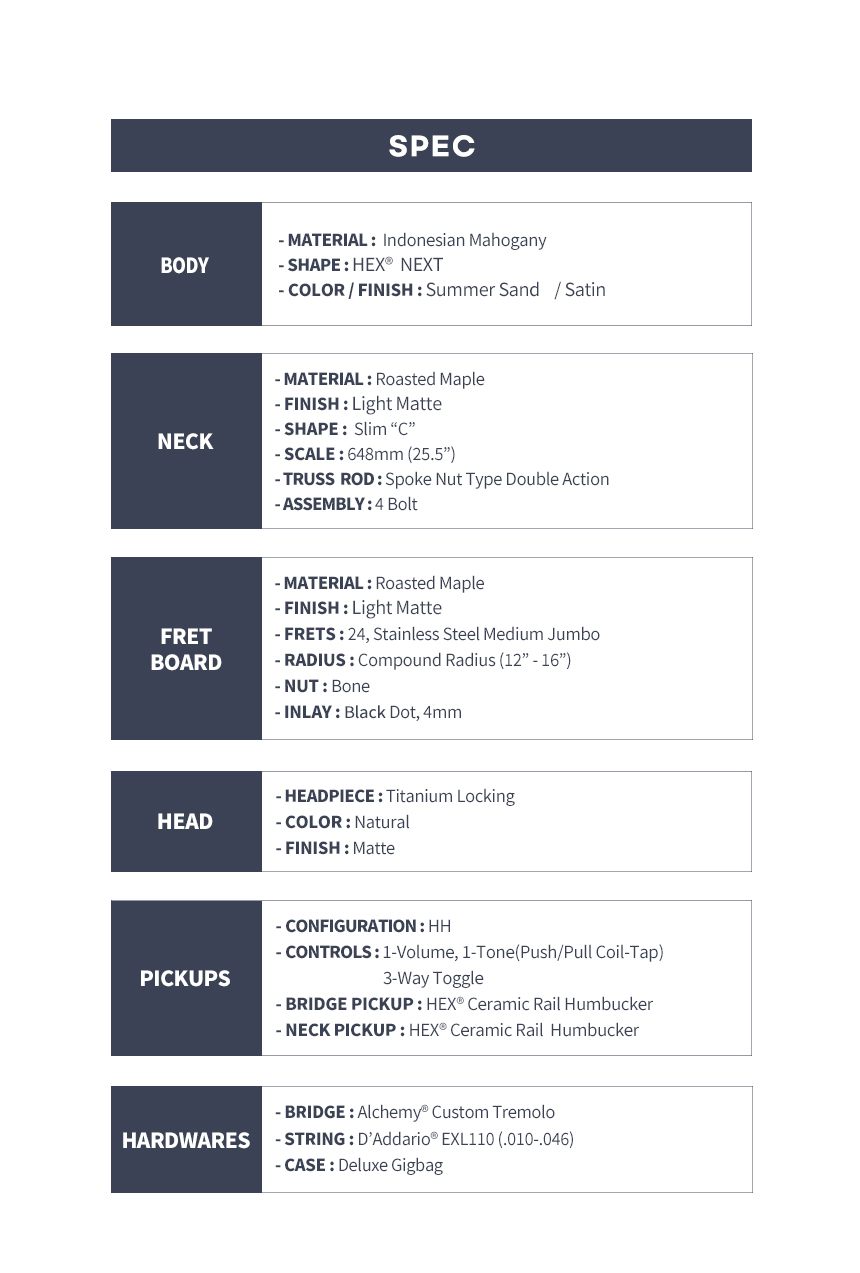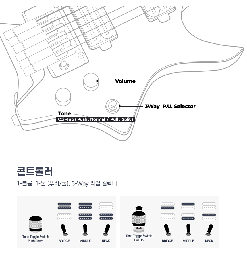 HEX - N500P 헥스 헤드리스 일렉기타 (S/SS)